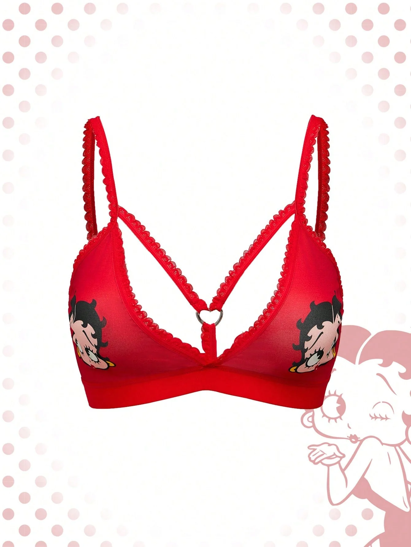 Betty Boop | ROMWE 1pc Cartoon Printed Heart Metal Ring Red Wireless Bra