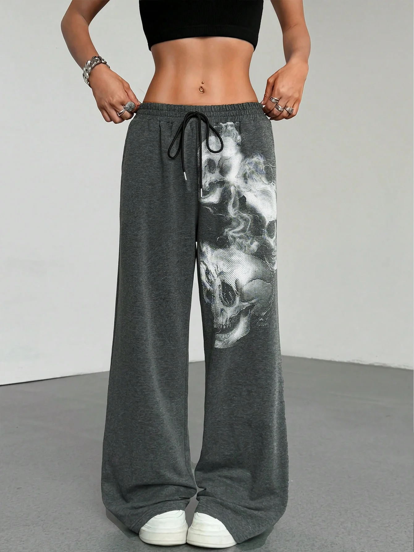 J-Fashion Gothic Graffiti Skeleton Waist Lace-Up Pants | ChicGrl