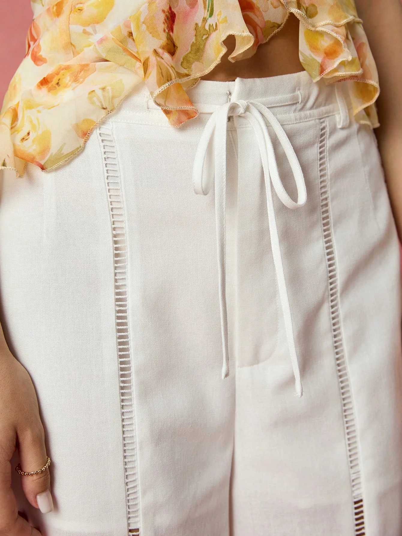 SHEIN Spring/Summer RomanticWomen White High Waist Drawstring Lace Stitching Stra | ChicGrl