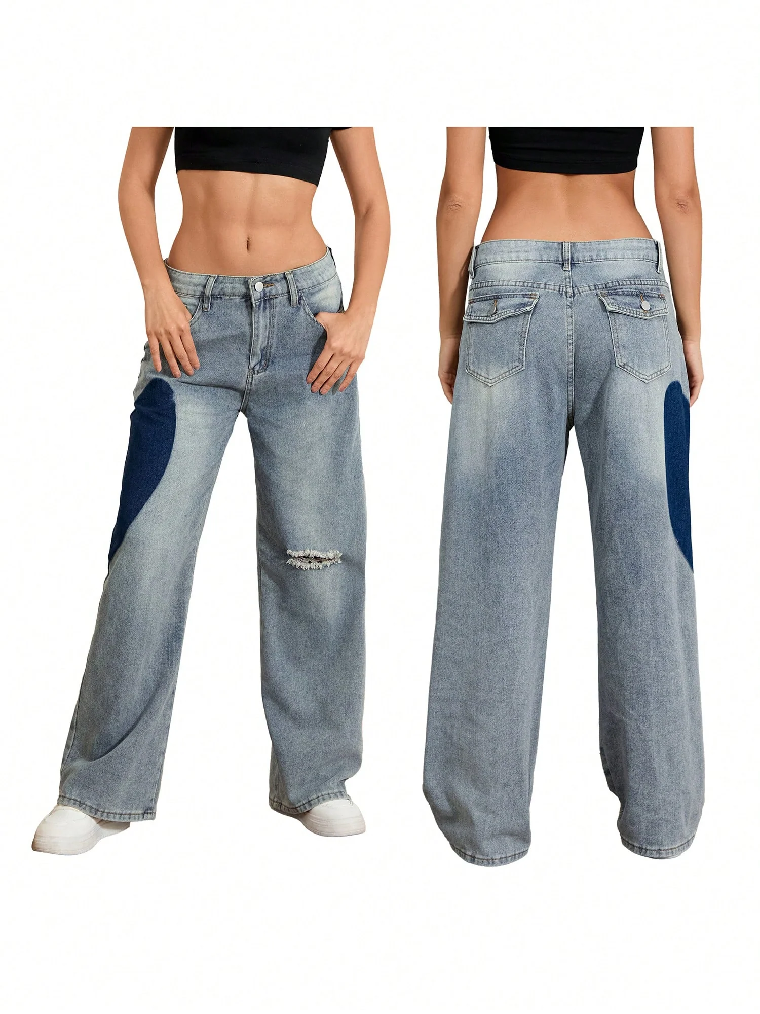 Women Fashion Wide-Leg Jeans Star Print Loose Denim Pants Spring Fall Casual Bagg | ChicGrl