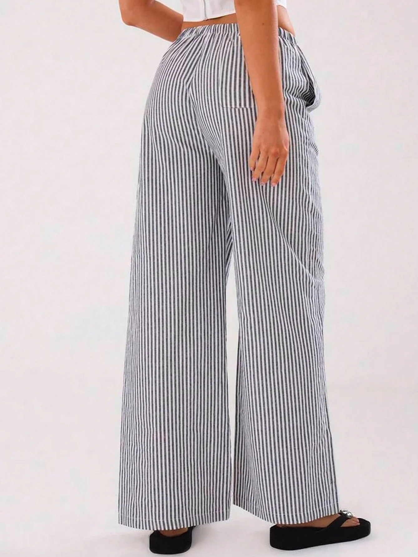 Women's High Waist Striped Wide Leg Pants, Elegant Office Wear Formal Trousers Wi | ChicGrl
