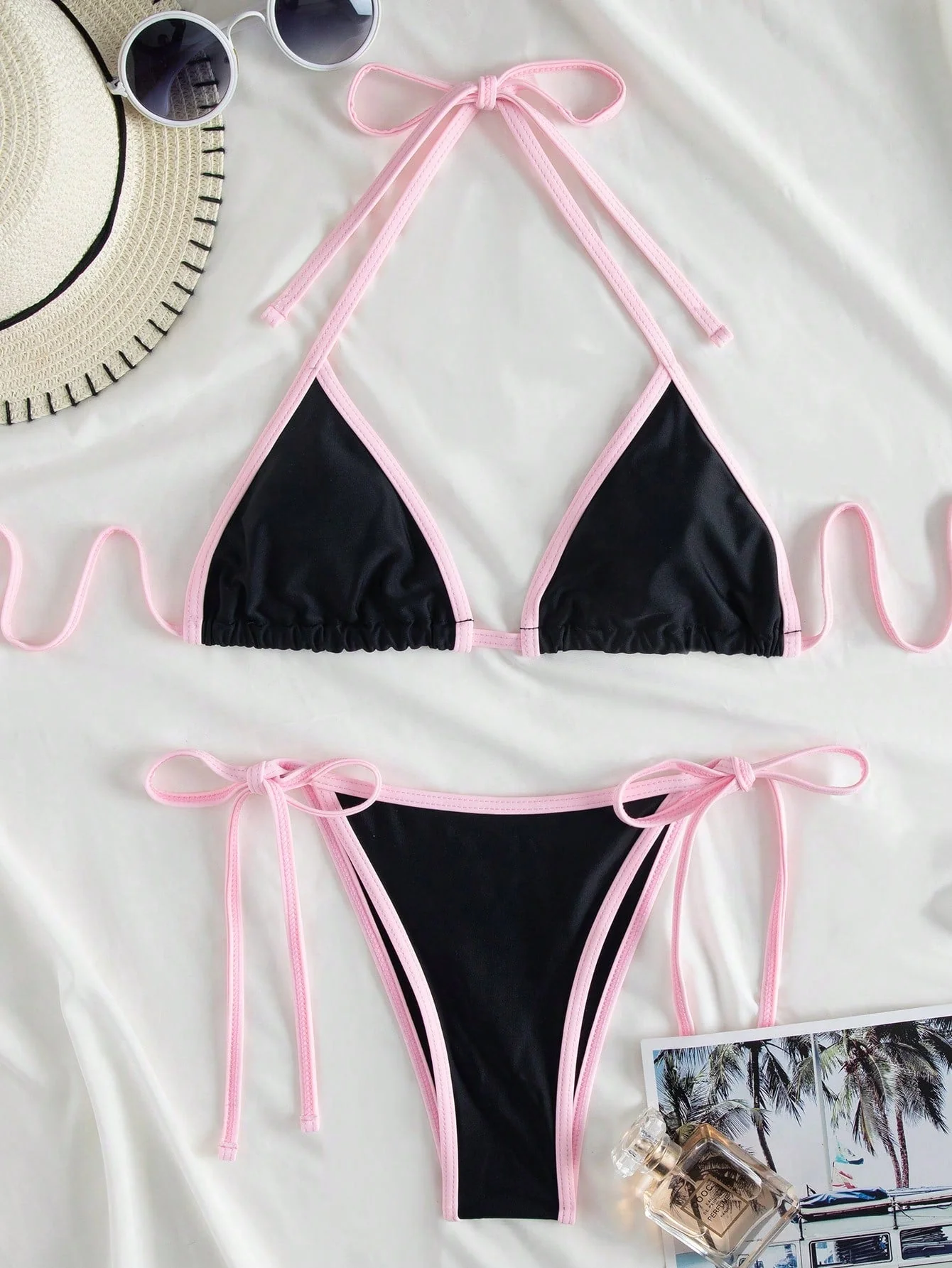Swim Mod Ladies Contrast Color Halter Strap Simple And Fashionable Bikini Separates Swimming Suit For Vacation, Summer Beach